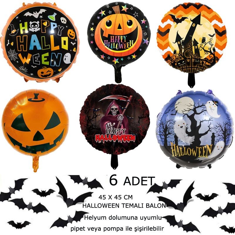 Farklı Modellerde Halloween Temalı 45x45 cm Folyo Balon 6 Adet