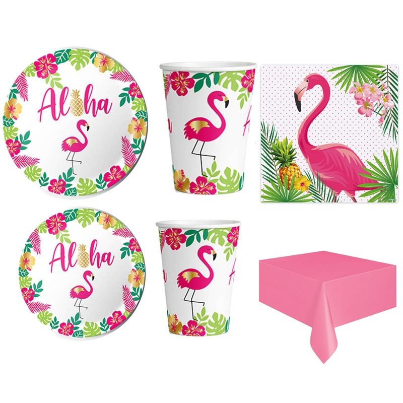 Flamingo Temalı Aloha Havai Konsept 16 Kişilik Tabak Bardak Peçete Örtü Set 49 Adet