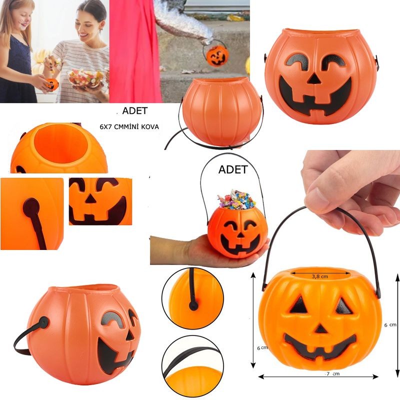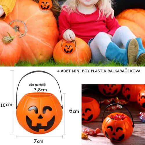 Halloween Saplı Balkabağı Plastik Şeker Toplama Kovası Orta 7x6 cm 4 Adet