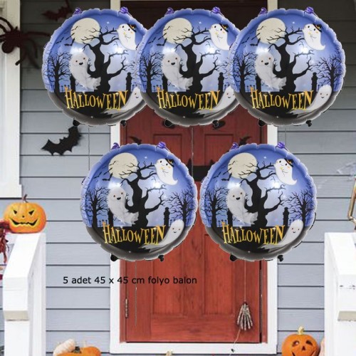 Halloween Yazılı Hayalet Ağacı Temalı 45x45 cm Folyo Balon 5 Adet