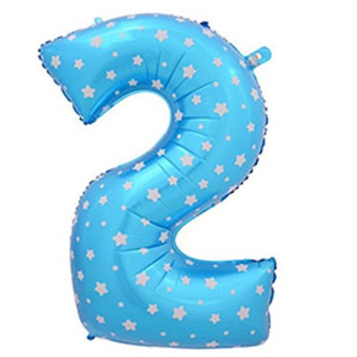 Yıldızlı 90 cm Mavi Renk Rakamlı Folyo Balon 2 Numara
